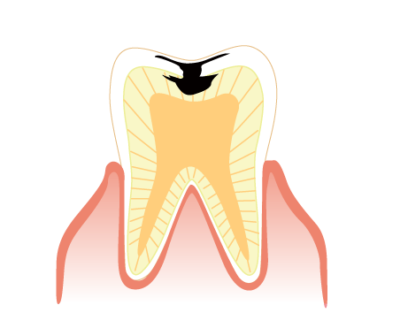 - ムシ歯が歯の内部に広がり象牙質まで進んだ状態。